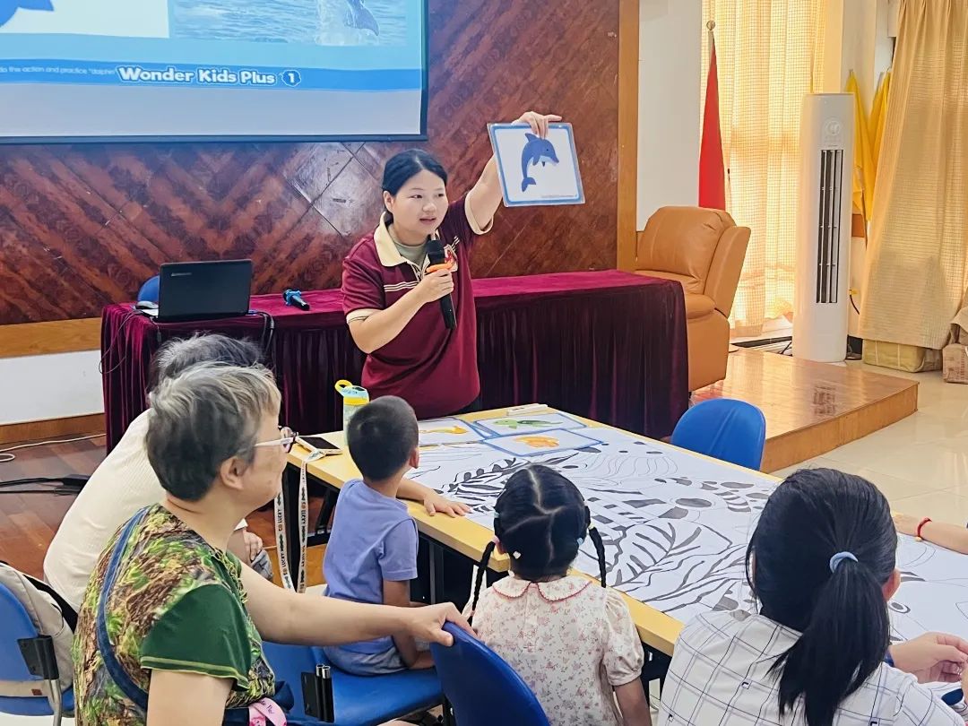 “小朋友们,跟着我读……”活动伊始,吉的堡老师以生动互动的方式,带领小朋友们开启了海洋英语启蒙之旅。孩子们兴致盎然地跟读“Dolphin(海豚)”、“Jellyfish(水母)”、“Seahorse(海马)”、“Turtle(乌龟)”、“Starfish(海星)”等词汇,在轻松氛围中认识了多彩的海洋生物,点燃了学习的热情。