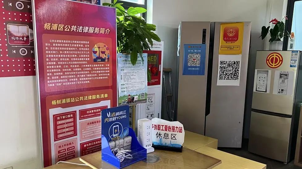 目前,杨浦滨江共有7座滨江驿站设置了“驿站绎法space”法治图书角,为参观市民提供了丰富的法律学习资源。此外,“法润滨江·秀带好Young”便民服务设施架,为过往游客提供充电等暖心服务;法声昂‘杨’法治服务指引专区,为往来市民提供诸如法律援助申请指南、在线公证服务介绍、行政复议便民服务卡等基层法治服务;有些站点还布设“数字律所”,让咨询服务更加便捷,解决问题更加精准。